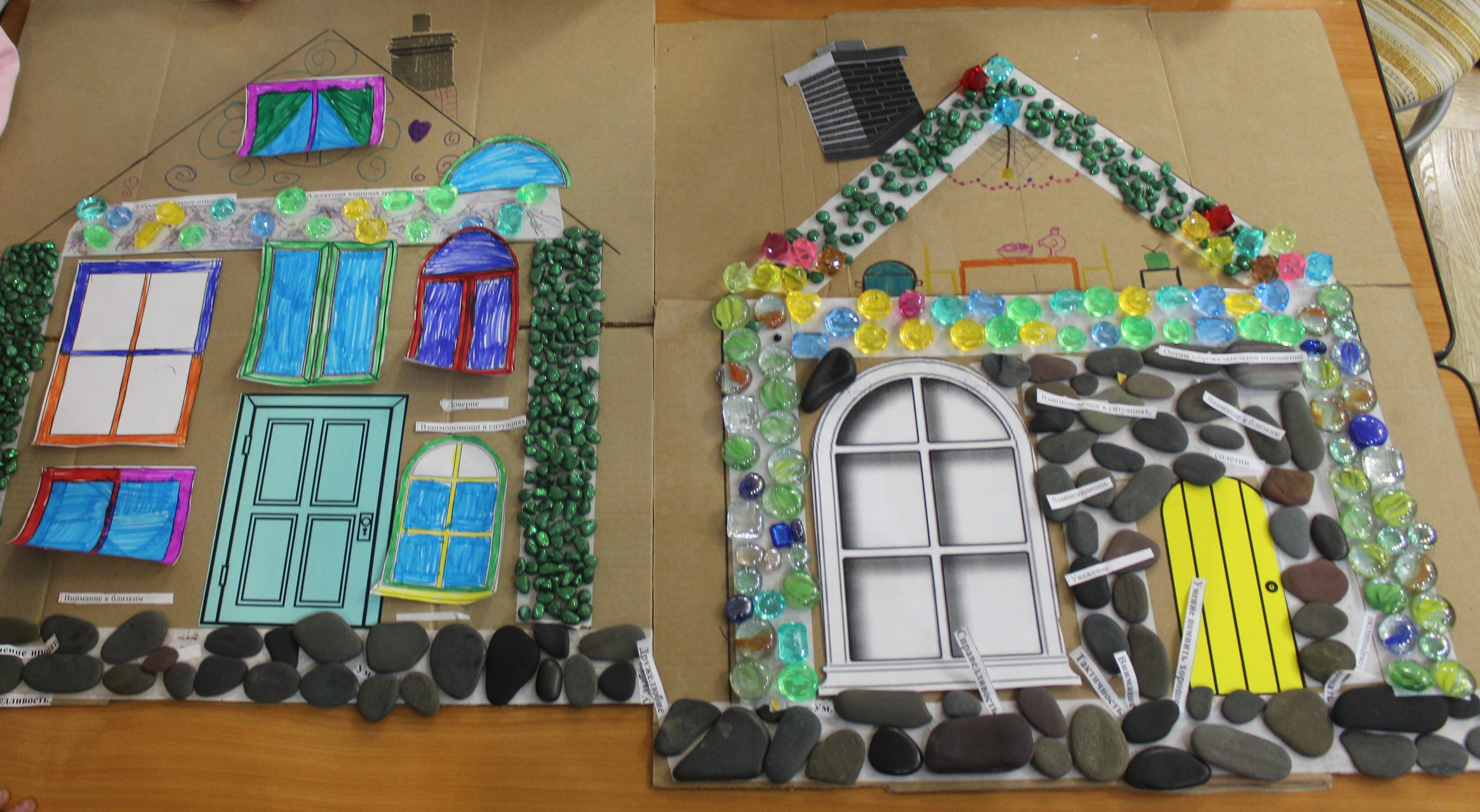 Данное мероприятие было направлено на формирование ресурсов к поддержанию положительного микроклимата в коллективе, активизацию размышлений воспитанников о значимости бесконфликтного общения в своем Доме. Наш дом - это не только наша крепость, но и наш внутренний мир, наш друг, в котором мы уверены, наши интересы и увлечения, привычки и взаимоотношения. Результатом занятия стали два построенных ДОМА.