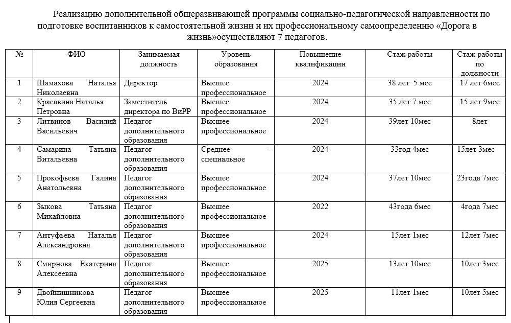 Информация о педагогических работниках, реализующих дополнительную программу